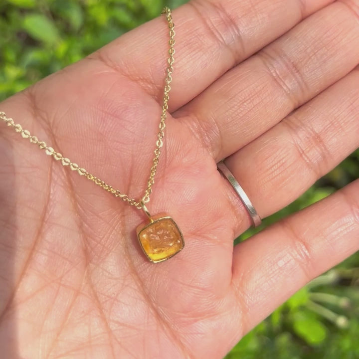 Invite joy, success, and abundance with this radiant raw Citrine pendant, handcrafted in gold-plated brass with an anti-tarnish, hypoallergenic finish.