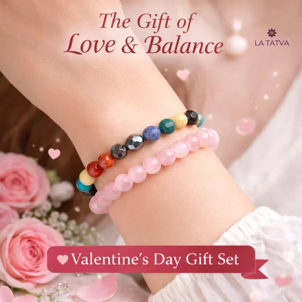 The Seven Chakra × Rose Quartz Combo by La Tatva is a thoughtfully curated pairing designed to balance her energy while gently opening her heart. Created for women who value intention as much as beauty, this combo is more than jewellery — it’s a Valentine’s gift filled with love, care, and meaning.