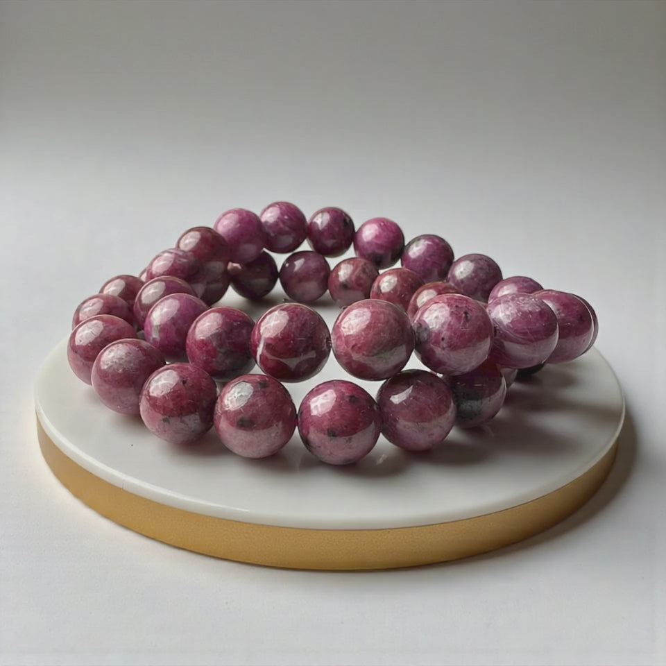 Each diamond-cut ruby bead reflects fiery brilliance in every movement, making this bracelet a powerful blend of luxury and meaning. Lightweight, skin-friendly, and perfect for daily wear, this bracelet brings bold elegance to your energy and style.