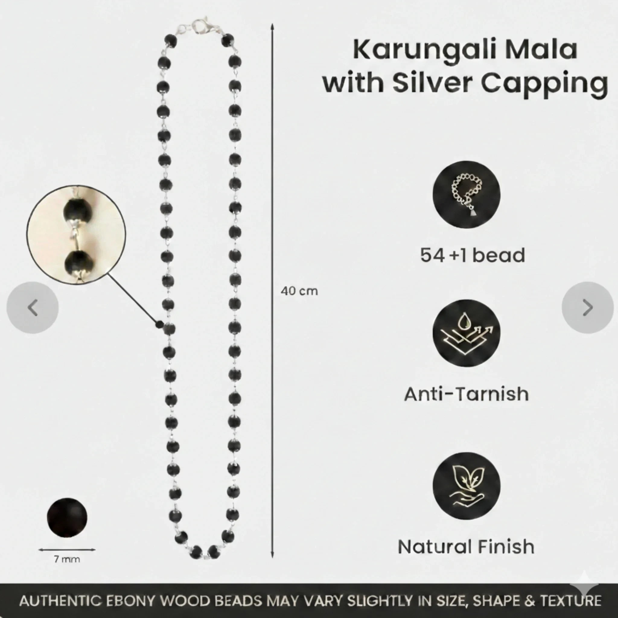 Silver Capped Karungali Malai (Black Ebony) – Aura Protection • Strength • Divine Clarity