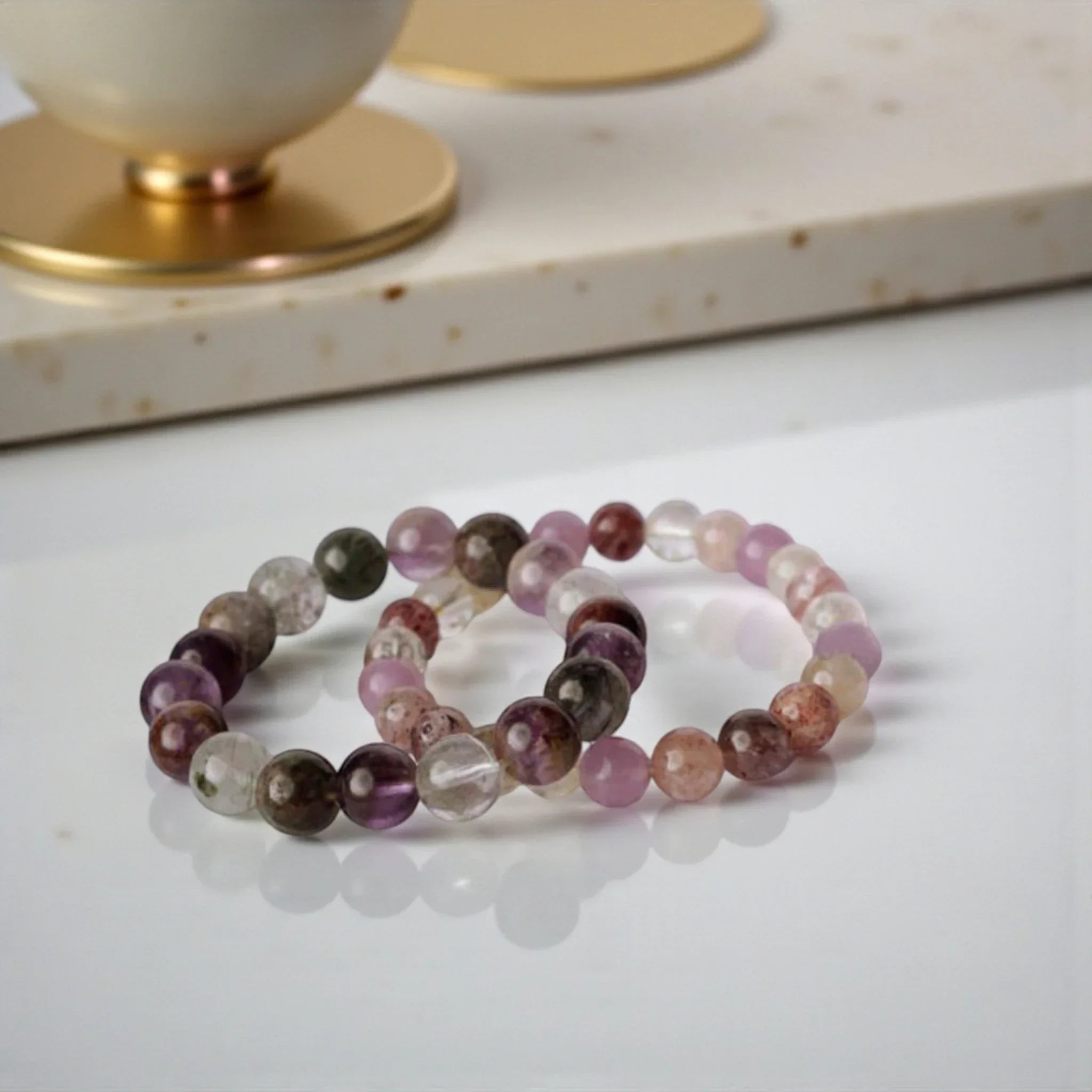 This bracelet is designed for those on a journey of growth, clarity, and higher awareness. Super Seven works across all chakras simultaneously, helping align mind, body, and spirit while amplifying intuition, emotional healing, and inner strength.